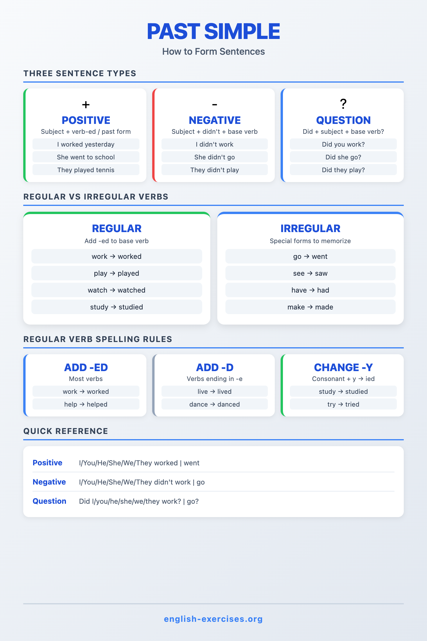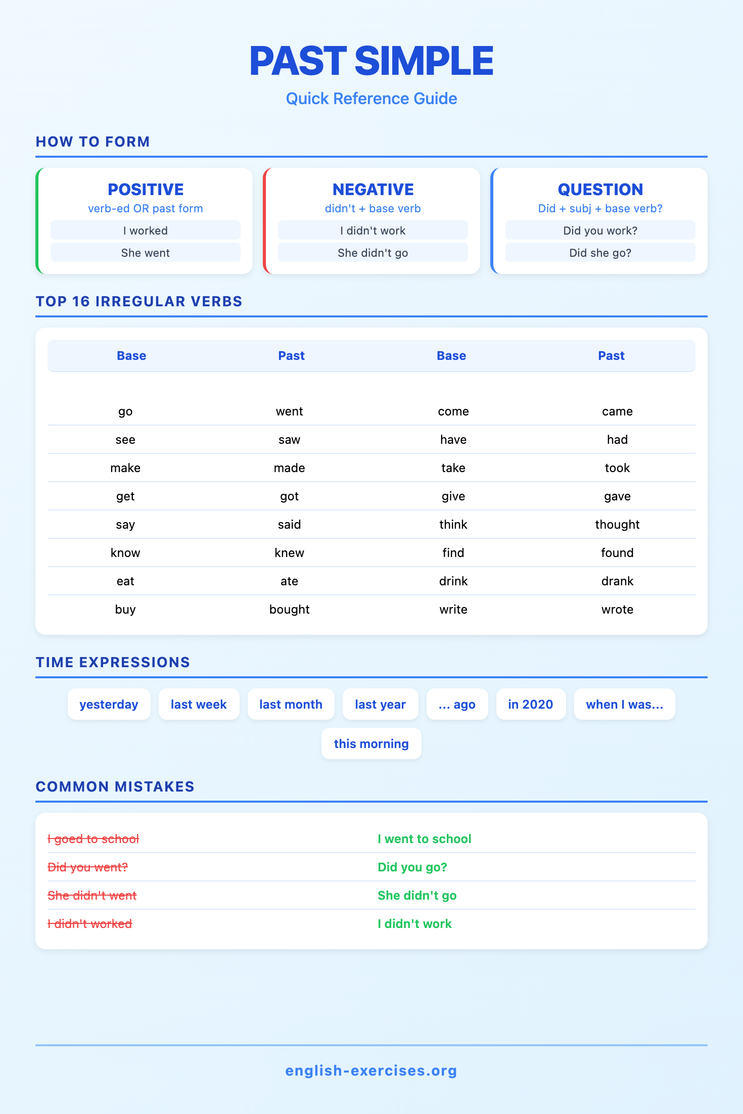 Practice 20 more irregular verbs (buy, bring, think, teach)